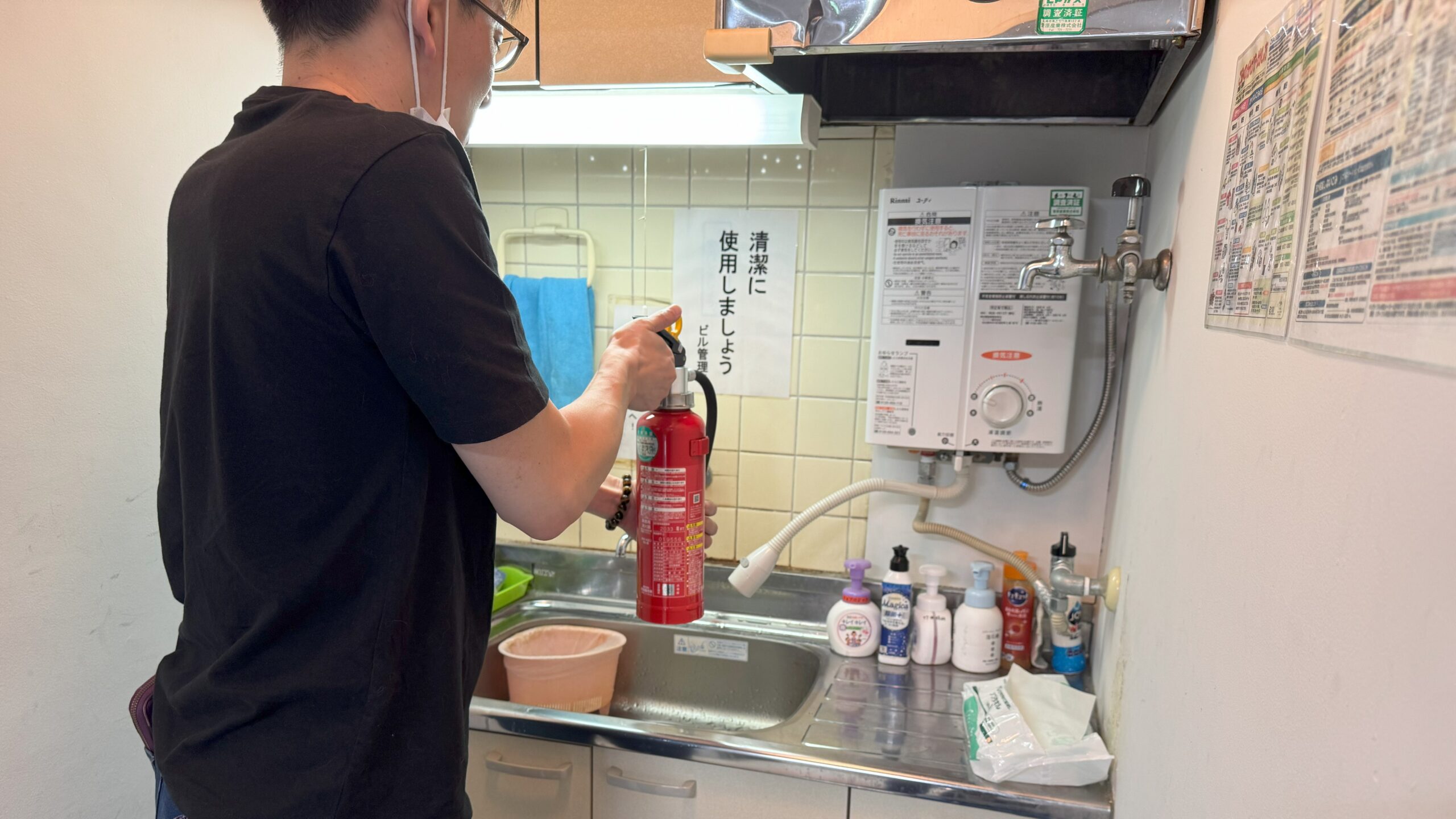 地震によって給湯器から出火したという想定で