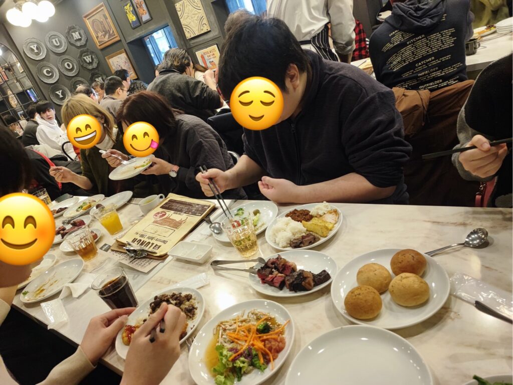 お肉をメインに堪能している方、バイキングのメニューを制覇する方、いかに時間内にお腹いっぱい食べるか考えている方、様々で見ていても楽しかったです!